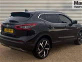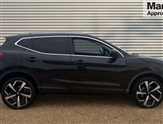 Advanced drive assist display 5'' TFT coloured screen, Bluetooth phone integration system, Cruise control + speed limiter, Electric speed sensitive power steering, Front parking sensors, Intelligent around view monitor, Intelligent parking assist, Lane departure warning system, Nissan connect evo 7"touchscreen navigation and entertainment system, Outside temperature sensor, Push button starter, Rear parking sensors, Rear view camera, Selectable steering, Service interval indicator, Smartphone integration, Stop/start system, Traffic sign recognition, Trip computer, Diesel particulate filter, Nissan chassis control (intelligent ride control, intelligent trace control, intelligent engine brake), Aux-in socket, Bose premium 8 speaker system, DAB Digital radio, Radio/CD, Steering wheel mounted audio controls, USB port, Anti dazzle rear view mirror, Auto wipers, Body colour bumpers, Body colour door handles, Body colour door mirrors, Chrome window surround, Daytime running lights dip function when turn signal applied, Electric folding door mirrors, Electric front and rear windows with one touch illuminated window controls, Electric front/rear windows, Electrically adjustable door mirrors, Front fog lights, Heated door mirrors, High beam assist, Intelligent auto headlights, LED indicators in door mirrors, Matt silver roof rails, Panoramic sunroof with one touch shade, Privacy glass, Rear roof spoiler, Rear wiper, Shark fin antenna, Underbody vortex generators, 2 X front 12v power sockets, 3 height adjustable rear headrests, 60/40 split folding rear seat, Ambient interior lighting, Boot light, Centre console storage box/armrest, Chrome interior door handles, Configurable luggage board system, Dual zone climate control, Electric adjust driver's seat, Front and rear door pockets with bottle holders, Front and rear seat belt pre-tensioners with load limiters, Front headrests, Height adjustable front headrests, Individual rear seat reading lights, Leather D shaped steering wheel, Leather gear lever, Leather knee pad, Manual height adjustable front passenger seat, Manual lumbar support on driver seat, Manual lumbar support on passenger seat, Monoform front seats with plastic backboard, One touch electric shade, Parcel shelf stow function under luggage board, Part leather upholstery, Pollen filter, Rear armrest with 2 cupholders, Rear headrests, Synthetic leather wrapped door handle with contrasting stitching, Tilt/telescopic adjustable steering wheel, Heat package - Qashqai, LED pack - Qashqai, Safety shield plus pack - Qashqai, 6 airbags - Driver, front passenger, curtain and side airbags, ABS, ESP, EBD and brake assist, Auto hold function, Child locks on rear doors, Electronic parking brake, Front and rear seat belt warning, Front passenger airbag deactivation, Height adjustable front seatbelts, Hill start assist, Intelligent emergency braking with pedestrian recognition, Three 3 point rear seatbelts, Tyre pressure monitoring system, Anti-theft immobiliser, Intelligent Key, Remote central locking, Thatcham Cat.1 alarm, Carbon graphite dash trim, Tyre puncture repair kit,