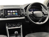 Advanced driver attention and drowsiness monitor, Amundsen navigation system with 8"touchscreen display and integrated WLAN and web radio, Electro-mechanical PAS, Emergency services call system, Lane assist, Outside temperature gauge, Sensor for driver assistance systems, Service interval indicator, SmartLink wireless for Apple and wired for Android, Start/stop system with regenerative braking, Traffic sign recognition, USB C Port x 2 in front centre console, Virtual Cockpit - 10.25"digital display, Wireless smartphone charging, 8 Speakers, DAB radio with Bluetooth, USB connection, Acoustic glass, Aero front windscreen wipers with intermittent function, Auto dimming rear view mirror with light and rain sensors, Black electric window control buttons, Body colour door mirrors and handles, Electric front and rear windows with child proof lock, Electrically adjustable heated folding and auto dimming door mirrors, Front fog lights, Headlight range control, Heated rear windscreen, LED daytime running lights, LED Headlights, LED rear lights with high functionality welcome effect and dynamic indicators, Light assistant (coming/leaving home/tunnel light), Plastic scuff plates in door apertures, Privacy glass, Rear side wing doors, Rear window wiper with washer system and intermittent control, Safety reflectors on front doors, Third brake light, Unique dark chrome design logo on alloy wheels, 1.5 litre bottle holders in driver and front passenger door panels, 12V socket in boot, 12v socket in front centre armrest with storage compartment and rear air vents, 2 spoke leather heated multifunction steering wheel, 2 x Tablet holder, 3 rear height adjustable headrests, 3 seat bench in 2nd row, 4 foldable roof handles with rear coat hooks, Black floor carpet, Cargo elements in boot, Chrome inner door handles, Driver/front passenger reading lights, Foldable hooks in the boot, Folding tables on the front seat backrests, Front head restraints, Height adjustable driver and passenger seat, Height adjustable front three point seats belts with tensioners, Height/reach adjust steering wheel, Ice scraper, Illuminated glovebox, Illuminated luggage compartment, Interior noise suppression, Isofix child seat preparation for front passenger seat, Isofix child seat preparation outer rear, Loft fabric upholstery, Manual lumbar support for front seats, Pearl grey interior ceiling, Pen holder, Pollen filter, Rear boot cover, Rear package tray, Rear reading lights, Rubbish bin door, Safety vest holder, Single front passenger seat, Skoda lettering on steering wheel, Storage box in upper central dashboard closed, Sunvisors with illuminated vanity mirrors, Textile floor mats, Ticket holder, Umbrella under passenger seat, Under passenger seat storage compartment, Non Smokers pack, Parking pack - Karoq, Winter pack with heated front seats - Karoq, Automatic door unlocking in case of crash, Automatic fuel cut off in case of crash, Driver airbag, Electronic parking brake with auto hold function, Emergency rear braking signal, ESC (incl. ABS+MSR+ASR+EDS+HBA+DSR+RBS+MKB), Front assist, Front side airbags, Head airbags, Hill hold control, Knee airbags, Passenger airbag with switch-off function, Pedestrian monitor, Seatbelt reminder signalisation and pretensioner for all seats, Three point seatbelts rear, Two tone horn, Tyre pressure monitor, Alarm with interior monitoring, back up horn and tilt sensor with safe function, Electronic engine immobiliser, Keyless entry and start/stop, Remote central locking with 2 remote folding keys, Anodized cross door decor, Black centre console, Chrome framed air vents, Satin black dashboard, Satin black door trim, Anti-theft wheel bolts protection, Breakdown and tool kit,