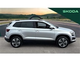 Amundsen satellite navigation with 8"touchscreen display with maps Europe, WLAN and web radio, Care connect, Drive mode selector, Driver fatigue sensor, Electro-mechanical PAS, Emergency services call system, Multifunction colour trip computer, Outside temperature gauge, Service interval indicator, SmartLink wireless for Apple and wired for Android, Start/stop system with regenerative braking, USB C Port x 2 in front centre console, 8 speakers, DAB radio with Bluetooth, USB connection, Acoustic glass, Aero front windscreen wipers with intermittent function, Auto dimming rear view mirror with light and rain sensors, Automatic headlight control system, Black electric window control buttons, Body colour door mirrors and handles, Body coloured bumpers, Doors steps in front with Karoq badging, Electric front and rear windows with child proof lock, Electrically adjustable heated folding and auto dimming door mirrors, Front fog lights, Heated rear windscreen, LED daytime running lights, LED Headlights, LED rear lights with high functionality welcome effect and dynamic indicators, Light assistant (coming/leaving home/tunnel light), Privacy glass, Rear side wing doors, Rear wiper, Safety reflectors on front doors, Third brake light, 1.5 litre bottle holders in driver and front passenger door panels, 12V socket in boot, 12v socket in front centre armrest with storage compartment and rear air vents, 2 Folding hooks and nets in boot, 2 Front readings lights for driver and passenger, 2 x Tablet holder, 3 rear height adjustable headrests, 3 seat bench in 2nd row, 4 foldable roof handles with rear coat hooks, Black floor carpet, Chrome inner door handles, Double sided boot floor, Foldable hooks in the boot, Folding tables on the front seat backrests, Front head restraints, Height adjustable driver and passenger seat, Height adjustable front three point seats belts with tensioners, Height/reach adjust steering wheel, Ice scraper, Illuminated and cooled glovebox, Illuminated luggage compartment, Isofix child seat preparation for front passenger seat, Isofix child seat preparation outer rear, Manual lumbar support for front seats, Pearl grey interior ceiling, Pen holder, Pollen filter, Rear boot cover, Rear reading lights, Rubbish bin door, Safety vest holder, Seatbelt reminder signalisation and pretensioner for all seats, Single front passenger seat, Storage box in upper central dashboard closed, Sunvisors with illuminated vanity mirrors, Textile floor mats, Umbrella under passenger seat, Airbags - Front side, head, knee and curtain, Automatic door unlocking in case of crash, Automatic fuel cut off in case of crash, Child locks on rear doors, Driver airbag, Electronic parking brake with auto hold function, Emergency rear braking signal, ESC including ABS, MSR, ASR, EDS, HBA, DSR, RBS, MKB and traction control, Front assist radar scanning of the space in front of the car with automatic braking, Hill hold control, Passenger airbag with switch-off function, Pedestrian monitor, Three point seatbelts rear, Two tone horn, Tyre pressure display, Tyre pressure monitor, Alarm with interior monitoring, back up horn and tilt sensor with safe function, Electronic engine immobiliser, Remote central locking with 2 remote folding keys, Black centre console, Chrome framed air vents, Satin black dashboard, Anti-theft wheel bolts protection, Storage on wheel cover,