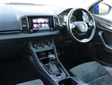 8"Digital display, Care connect, Colour multifunction trip computer, Driver fatigue sensor, Emergency services call system, Outside temperature gauge, Service interval indicator, SmartLink wireless for Apple and wired for Android, Start/stop system with regenerative braking, USB C Port x 2 in front centre console, 8 Speakers, DAB radio with Bluetooth, USB connection, Acoustic glass, Aero front windscreen wipers with intermittent function, Auto dimming rear view mirror with light and rain sensors, Automatic headlight control system, Black electric window control buttons, Body colour door mirrors and handles, Electric front and rear windows with child proof lock, Heated rear windscreen, LED daytime running lights, LED rear lights with high functionality welcome effect and dynamic indicators, Light assistant (coming/leaving home/tunnel light), Plastic scuff plates, Privacy glass, Rear side wing doors, Rear spoiler, Rear window wiper with washer system and intermittent control, Safety reflectors on front doors, 1.5 litre bottle holders in driver and front passenger door panels, 12V socket in boot, 12v socket in front centre armrest with storage compartment and rear air vents, 2 Folding hooks and nets in boot, 2 spoke leather heated multifunction steering wheel with DSG paddles, 2 x Tablet holder, 3 rear height adjustable headrests, 3 seat bench in 2nd row, 4 foldable roof handles with rear coat hooks, Black floor carpet, Chrome inner door handles, Decorative door sills with KAROQ badging, Double sided boot floor, Foldable hooks in the boot, Front head restraints, Height adjustable front three point seats belts with tensioners, Height/reach adjust steering wheel, Ice scraper, Illuminated glovebox, Illuminated luggage compartment, Isofix child seat preparation for front passenger seat, Isofix child seat preparation outer rear, Manual lumbar support for front seats, Pen holder, Pollen filter, Rear boot cover, Rear reading lights, Rubbish bin door, Safety vest holder, Single front passenger seat, Storage box in upper central dashboard closed, Sunvisors with illuminated vanity mirrors, Textile floor mats, Ticket holder, VarioFlex seats with standard rear seat release, Chrome roof rails + chrome pack - Karoq, Parking pack - Karoq, Automatic door unlocking in case of crash, Automatic fuel cut off in case of crash, Child locks on rear doors, Driver airbag, Electronic parking brake with auto hold function, Emergency rear braking signal, ESC including ABS, MSR, ASR, EDS, HBA, DSR, RBS, MKB and traction control, Front side airbags, Hill hold control, Knee airbags, Passenger airbag with switch-off function, Pedestrian monitor, Seatbelt reminder signalisation and pretensioner for all seats, Three point seatbelts rear, Two tone horn, Tyre pressure display, Tyre pressure monitor, Alarm with interior monitoring, back up horn and tilt sensor with safe function, Electronic engine immobiliser, Keyless entry and start/stop, Remote central locking with 2 remote folding keys, Chrome framed air vents, Anti-theft wheel bolts protection, Storage on wheel cover, Tool kit,