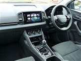 Advanced driver attention and drowsiness monitor, Drive Mode Selection including ECO function, Electro-mechanical PAS, Emergency services call system, Outside temperature gauge, Sensor for driver assistance systems, Service interval indicator, SmartLink wireless for Apple and wired for Android, Start/stop system with regenerative braking, Traffic sign recognition, USB C Port x 2 in front centre console, Virtual Cockpit - 10.25"digital display, Virtual pedal with electrically operated boot door, Wireless smartphone charging, DAB radio with Bluetooth, USB connection, Acoustic glass, Aero front windscreen wipers with intermittent function, Auto dimming rear view mirror with light and rain sensors, Black electric window control buttons, Body colour door mirrors and handles, Electric front and rear windows with child proof lock, Extended rear roof spoiler, Heated rear windscreen, LED daytime running lights, LED rear lights with high functionality welcome effect and dynamic indicators, Light assistant (coming/leaving home/tunnel light), Plastic scuff plates in door apertures, Privacy glass, Rear side wing doors, Rear window wiper with washer system and intermittent control, Safety reflectors on front doors, Third brake light, Unique dark chrome design logo on alloy wheels, 1.5 litre bottle holders in driver and front passenger door panels, 12V socket in boot, 12v socket in front centre armrest with storage compartment and rear air vents, 2 spoke leather heated multifunction steering wheel, 2 x Tablet holder, 3 rear height adjustable headrests, 3 seat bench in 2nd row, 4 foldable roof handles with rear coat hooks, Black floor carpet, Cargo elements in boot, Chrome inner door handles, Decorative door sills with KAROQ badging, Foldable hooks in the boot, Front head restraints, Height adjustable front three point seats belts with tensioners, Height/reach adjust steering wheel, Ice scraper, Illuminated glovebox, Illuminated luggage compartment, Interior noise suppression, Isofix child seat preparation for front passenger seat, Isofix child seat preparation outer rear, Manual lumbar support for front seats, Pearl grey interior ceiling, Pen holder, Pollen filter, Rear boot cover, Rear package tray, Rear reading lights, Rubbish bin door, Safety vest holder, Single front passenger seat, Skoda lettering on steering wheel, Storage box in upper central dashboard closed, Sunvisors with illuminated vanity mirrors, Textile floor mats, Ticket holder, Columbus pack - Karoq, Design Pack - Karoq, Non Smokers pack, Parking pack - Karoq, Automatic door unlocking in case of crash, Automatic fuel cut off in case of crash, Driver airbag, Electronic parking brake with auto hold function, Emergency rear braking signal, ESC (incl. ABS+MSR+ASR+EDS+HBA+DSR+RBS+MKB), Front side airbags, Head airbags, Hill hold control, Knee airbags, Passenger airbag with switch-off function, Pedestrian monitor, Power operated child safety locks, Seatbelt reminder signalisation and pretensioner for all seats, Three point seatbelts rear, Two tone horn, Tyre pressure monitor, Alarm with interior monitoring, back up horn and tilt sensor with safe function, Electronic engine immobiliser, Keyless entry and start/stop, Remote central locking with 2 remote folding keys, Black centre console, Chrome framed air vents, Satin black dashboard, Anti-theft wheel bolts protection, Breakdown and tool kit,
