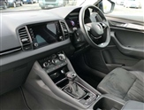 8"Digital display, Care connect, Driver fatigue sensor, Emergency services call system, Outside temperature gauge, Service interval indicator, SmartLink wireless for Apple and wired for Android, Start/stop system with regenerative braking, USB C Port x 2 in front centre console, 8 Speakers, DAB radio with Bluetooth, USB connection, Acoustic glass, Aero front windscreen wipers with intermittent function, Auto dimming rear view mirror with light and rain sensors, Black electric window control buttons, Body colour door mirrors and handles, Dynamic headlight range control with cornering light function, Electric front and rear windows with child proof lock, Heated rear windscreen, LED daytime running lights, LED rear lights with high functionality welcome effect and dynamic indicators, Light assistant (coming/leaving home/tunnel light), Plastic scuff plates, Privacy glass, Rear side wing doors, Rear spoiler, Rear window wiper with washer system and intermittent control, Safety reflectors on front doors, 1.5 litre bottle holders in driver and front passenger door panels, 12V socket in boot, 12v socket in front centre armrest with storage compartment and rear air vents, 2 Folding hooks and nets in boot, 2 spoke leather heated multifunction steering wheel with DSG paddles, 2 x Tablet holder, 3 rear height adjustable headrests, 3 seat bench in 2nd row, 4 foldable roof handles with rear coat hooks, Black floor carpet, Chrome inner door handles, Decorative door sills with KAROQ badging, Double sided boot floor, Foldable hooks in the boot, Front head restraints, Height adjustable front three point seats belts with tensioners, Height/reach adjust steering wheel, Ice scraper, Illuminated glovebox, Illuminated luggage compartment, Isofix child seat preparation for front passenger seat, Isofix child seat preparation outer rear, Manual lumbar support for front seats, Pen holder, Pollen filter, Rear boot cover, Rear reading lights, Rubbish bin door, Safety vest holder, Single front passenger seat, Storage box in upper central dashboard closed, Sunvisors with illuminated vanity mirrors, Textile floor mats, Ticket holder, VarioFlex seats with standard rear seat release, Chrome roof rails + chrome pack - Karoq, Parking pack - Karoq, Automatic door unlocking in case of crash, Automatic fuel cut off in case of crash, Child locks on rear doors, Driver airbag, Electronic parking brake with auto hold function, Emergency rear braking signal, ESC including ABS, MSR, ASR, EDS, HBA, DSR, RBS, MKB and traction control, Front side airbags, Hill hold control, Knee airbags, Passenger airbag with switch-off function, Pedestrian monitor, Seatbelt reminder signalisation and pretensioner for all seats, Three point seatbelts rear, Two tone horn, Tyre pressure display, Tyre pressure monitor, Alarm with interior monitoring, back up horn and tilt sensor with safe function, Electronic engine immobiliser, Keyless entry and start/stop, Remote central locking with 2 remote folding keys, Chrome framed air vents, 18"Procyon silver alloy wheels with anthracite aero inserts, Anti-theft wheel bolts protection, Storage on wheel cover, Tool kit,