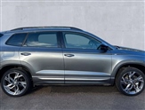8"Digital display, Advanced driver attention and drowsiness monitor, Emergency services call system, Outside temperature gauge, Sensor for driver assistance systems, Service interval indicator, SmartLink wireless for Apple and wired for Android, Start/stop system with regenerative braking, USB C Port x 2 in front centre console, Virtual Cockpit - 10.25"digital display, Virtual pedal with electrically operated boot door, Wireless smartphone charging, DAB radio with Bluetooth, USB connection, Acoustic glass, Aero front windscreen wipers with intermittent function, Auto dimming rear view mirror with light and rain sensors, Black door mirrors, Black electric window control buttons, Black radiator grille, Black roof rails, Body colour door handles, Electric front and rear windows with child proof lock, Front door steps with SportLine logo, Heated rear windscreen, LED daytime running lights, LED rear lights with high functionality welcome effect and dynamic indicators, Light assistant (coming/leaving home/tunnel light), Panoramic sliding sunroof, Plastic scuff plates in door apertures, Privacy glass, Protective door side sills in body colour, Rear diffuser, Rear side wing doors, Rear spoiler, Rear window wiper with washer system and intermittent control, Safety reflectors on front doors, Skoda lettering on tailgate in black, Sportline badge on front fender, Sportline decorative inserts with badging, Sports front and rear bumpers, Third brake light, 1.5 litre bottle holders in driver and front passenger door panels, 12V socket in boot, 12v socket in front centre armrest with storage compartment and rear air vents, 2 x Tablet holder, 3 rear height adjustable headrests, 3 seat bench in 2nd row, 3 spoke sports leather heated multifunction steering wheel with DSG paddles, 4 foldable roof handles with rear coat hooks, Black floor carpet, Black roof headlining, Chrome inner door handles, Foldable hooks in the boot, Front head restraints, Height adjustable front three point seats belts with tensioners, Height/reach adjust steering wheel, Ice scraper, Illuminated glovebox, Illuminated luggage compartment, Isofix child seat preparation for front passenger seat, Isofix child seat preparation outer rear, Manual lumbar support for front seats, Pen holder, Pollen filter, Rear boot cover, Rear reading lights, Rear seats fixed folding and divided 60:40, Rubbish bin door, Safety vest holder, Single front passenger seat, Storage box in upper central dashboard closed, Sunvisors with illuminated vanity mirrors, Textile floor mats, Ticket holder, Titan black interior ceiling, Umbrella under passenger seat, Under passenger seat storage compartment, LED Interior lighting pack with Skoda welcome logo - Karoq, Light Pack - Karoq, Non Smokers pack, Automatic door unlocking in case of crash, Automatic fuel cut off in case of crash, Driver airbag, Electronic parking brake with auto hold function, Emergency rear braking signal, ESC (incl. ABS+MSR+ASR+EDS+HBA+DSR+RBS+MKB), Front side airbags, Head airbags, Hill hold control, Knee airbags, Passenger airbag with switch-off function, Pedestrian monitor, Seatbelt reminder signalisation and pretensioner for all seats, Three point seatbelts rear, Two tone horn, Tyre pressure monitor, Alarm with interior monitoring, back up horn and tilt sensor with safe function, Electronic engine immobiliser, Keyless entry and start/stop, Remote central locking with 2 remote folding keys, Black air vent surround, Black centre console, carbon door decor, Satin black dashboard, Satin black door trim, 19"Sagittarius anthracite alloy wheels, Anti-theft wheel bolts protection, Breakdown and tool kit,