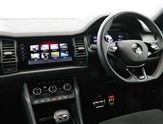 Bluetooth system, Columbus satellite navigation with 9.2"touchscreen, integrated Wi-Fi, web radio, Digital voice enhancement, e call+, ECO Stop/start function, Exterior temperature indicator, Progressive steering, Rear view camera, Smartlink wireless for apple carplay and wired for android auto, Speed limiter, Tailgate unlocking from outside, USB C Port x 2 in front centre console, Virtual Cockpit - 10.25"digital display with additional sports design, Wireless charging, 8 Speakers, DAB Digital radio, Aero front windscreen wipers with intermittent function, Aero rear window wiper, Auto dimming rear view mirror, Black roof rails, Black sports styling including front grille and window surrounds, Black wheel arch surrounds, Body colour bumpers, Body colour door handles, Electric adjustable/heated/folding door mirrors, driver side auto dimming with boarding sports and memory function, Electric front and rear windows, Extended rear spoiler with finlets in gloss black, Front fog lights, Full LED matrix headlights with AFS (adaptive front light system), cornering function and AWL (all weather lighting system), Gloss black door mirrors, Headlight washers, Heated rear window, Invisible tailpipe, LED daytime running lights, LED rear fog light, LED third brake light in rear spoiler, Light assistant (coming/leaving home/tunnel light), Off-road style lower front bumper element, Privacy glass, Rain and light sensors, Rear diffuser, Rear LED lights (high functionality) with welcome effect and dynamic indicators, Rear side wing doors, Safety reflectors on front and rear doors, Sportline badge on front fender, Sports front and rear bumpers including lower rear chrome strip, Tailgate lettering in Black, Window control switches with black trim, Without engine designation, 12V socket in boot, 2 rails with 2 hooks, 2 seat bench in 3rd row, 3 seat bench in 2nd row, 3 spoke leather multifunction sports steering wheel with DSG paddles, 4 foldable roof handles with rear coat hooks, 60:40 foldable rear seat with sliding adjustment and backrest angle adjustment, Aluminium pedals, Black roof headlining, Bottle holders in door panel in the 1.5 litre front and 1 litre rear, Cargo storage compartments, Chrome headlight control button, Chrome interior door handles, Coat hooks on B pillar, Covered storage compartment on driver side, Decorative door sill covers, Front and rear door armrest with black adductor trim, Front centre armrest with storage compartment, cup holder and 12V socket, Front courtesy lights, Gear shift lever with chrome frame and black gloss insert, Grey stitching in front and rear armrests and door armrests + door inserts, Height adjustable front headrests, Illuminated glovebox, Illuminated luggage compartment, Isofix child seat fittings in outer rear seats with top tether, Manually adjustable steering column, Microsuede door panels, Net programme in boot (1x horizontal Net, 2x vertical Nets), Overhead glasses storage compartment, Pollen filter, Rear centre armrest with cupholders, Single front passenger seat, Sliding trunk cover, Small Bags on the inner sides of the front backrests, Sports seats, Sunvisors with illuminated vanity mirrors, Three rear height adjustable headrests, Ticket holder on A Pillar, Umbrella in door panel, Variable boot floor, LED Interior light pack - Kodiaq, Auto door release and activation of warning lights in the event of an accident, Driver and front passenger airbag with knee airbag and front passenger airbag deactivation, Electronic parking brake with hill start assist, Emergency rear braking signal, ESC (incl. ABS+MSR+ASR+EDS+HBA+DSR+RBS+MKB), Front assist with autonomous emergency braking, Front side airbags with curtain airbags, Fuel cut off safety device, Height adjustable front 3 point seatbelts + pretensioners, Hill hold control, Rear disc brakes, Safety vest holder in door, Seat belt reminder for all seats, Three point rear seat belts, Two tone horn, Tyre pressure monitor, Alarm with interior monitoring