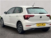 Bluetooth mobile phone interface, Cruise control + speed limiter, Driver alert system, Emergency call service, Lane keeping system Lane Assist, Power assisted speed sensitive steering, Preparation for We connect and We connect plus, Speedo and rev counter, electronic odometer, trip, service interval display and fuel gauge, Standard rear axle, Trip computer, Warning signal and warning light for front and rear seatbelts not fastened, Washer fluid level indicator, Wireless app connect, Front wheel drive, Rear shock absorpion, Start-stop system with battery regeneration (recuperation - energy recovery during braking), DAB Digital radio, Diversity antenna for FM reception, Front and rear 6 speakers, Automatic dimming interior rear view mirror, Body colour bumpers, Body colour door handles, Body colour door mirrors, Electric front windows, Heat insulating darkened glass in side and rear windows, Heat insulating glass windscreen, Power folding adjustable/heated exterior mirrors and front passenger exterior mirror lowering function, Rain sensor, Rear electric windows, Rear fog light, Rear side wing doors, Rear windscreen washer and wiper with interval delay, Third brake light, 12V power socket in centre console, 2 front and 2 rear reading lights, 2 USB-C ports in the front, 2 USB-C charging sockets on the center console in the rear, 3 rear head restraints, 60/40 split folding rear seat and rear seat bench not split, Chrome plated radiator grille inserts, air vent surrounds and light switch surrounds, Door and side trim panel, Driver and front passenger seat height adjustment, Driver/passenger sunvisors with illuminated vanity mirrors, Front centre armrest, Front seat backrest storage pockets, Front standard seats, Handbrake lever handle in leather, Hartley/Thomas cloth upholstery, Headliner in recycled material, Isofix child seat preparation easy-fit (for two outer rear seats, and front passenger seat) compatible with I-size, Leather trimmed gear knob, Luggage compartment cover, Luggage compartment floor, Luggage compartment lighting, Multifunction steering wheel, Single front passenger seat, Standard pedal cluster, Light and vision pack - Polo, 3 point height adj front seatbelts + pretensioners, 3x3 point rear seatbelts, ABS, Driver and front passenger airbag with front passenger airbag deactivation, Drivers and front passengers safety optimised head restraints, ESC (Electronic stability control) + EDL (Electronic Differntial lock) and ASR (Traction control), Extended and predictive pedestrian/ cyclist protection, Front assist including city emergency braking, Front curtain and side airbags with center airbag, Front disc brakes, Hill hold control, Manual child lock in rear doors, Rear drum brakes, Single tone horn, Tyre pressure loss indicator, Alarm with interior protection, Anti-theft alarm system with interior monitoring, backup horn, and towing protection, Anti-theft wheel bolts, Electronic engine immobiliser, Lava stone black gloss/matt decorative inserts in dash and front door panels, Low rolling resistance tyres,