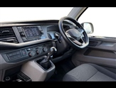 Cross wind assist, Dimmable illuminated instruments, Driver alert with Multi-function display plus, eCall emergency system, Forward collision warning front assist with autonomous emergency braking, Mobile phone interface, Multi function display plus with black and white display, 2 USB interfaces type C in dashboard, 4 speakers with 2 tweeters and 2 woofers, Composition colour radio with 6.5"touchscreen, Digital radio reception (DAB+), Volkswagen app connect, Closing rear wing door with unlatching from the inside, H7 twin halogen headlamps, Heat insulating glass (green) in cab and passenger/load compartment, Heat insulating windshield made of laminated glass, Left convex exterior mirror, Rear wing doors without window apertures, Right convex exterior mirror, Separate Daytime running lights, Transporter nameplate on the rear fender, Unpainted radiator grille with 2 chrome trims, 3 spoke leather wrapped multi function steering wheel, Comfort headliner in cab, hardboard roof trim in passenger and load compartment, Dust/pollen filter, Folding grab handles on roof frame, Front and rear left without window closed side panel in load compartment, Front seats on the right in 1st row of seat, Heavy duty tool kit and jack, High partition, Interior plastic loading edge protection, LED Interior lighting in load and passenger compartment, Standard lower part dashboard in palladium, Without refrigerant, Without right side window apertures in passenger and load compartment, Non smoker pack - Transporter, 3 point height adjustable seat belts on outer seats cab with electric pretensioners, Driver and front passenger airbag with front passenger airbag deactivation, Warning buzzer and light for driver and front passenger seat belt not fastened, Without child safety lock in passenger compartment, Electronic immobiliser, Wheel bolts without wheel locks, 16"chassis with 16"brake system, Diesel particulate filter, Electronic stability control, ABS, ASR with deactivation button, hill start assist and brake assist system, Standard anti drum measures, Start/stop system with regenerative breaking,